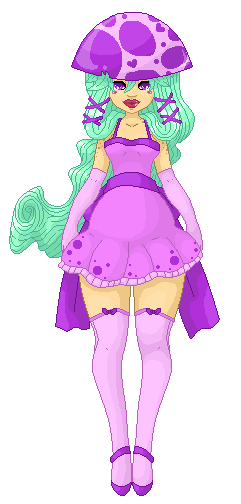 She has a 'human' appearance, which is pretty much her with no hat and studying at a school to become a chef. She controls some plant based magic and she has a little fairy friend named Phee. Other than that, not too much to really know. xD;